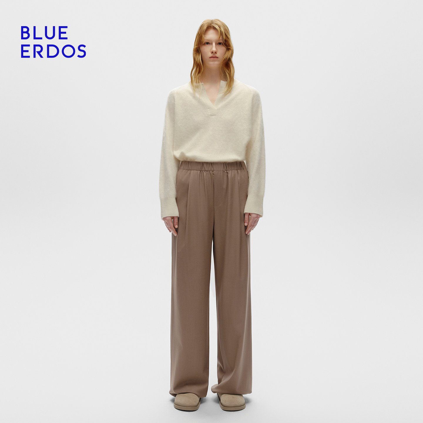 BLUE ERDOS冬季新品复古简约羊毛混纺休闲直筒裤女裤B256M1023