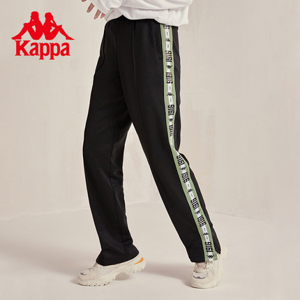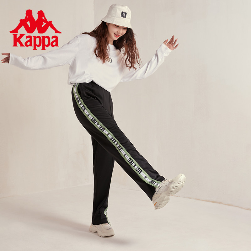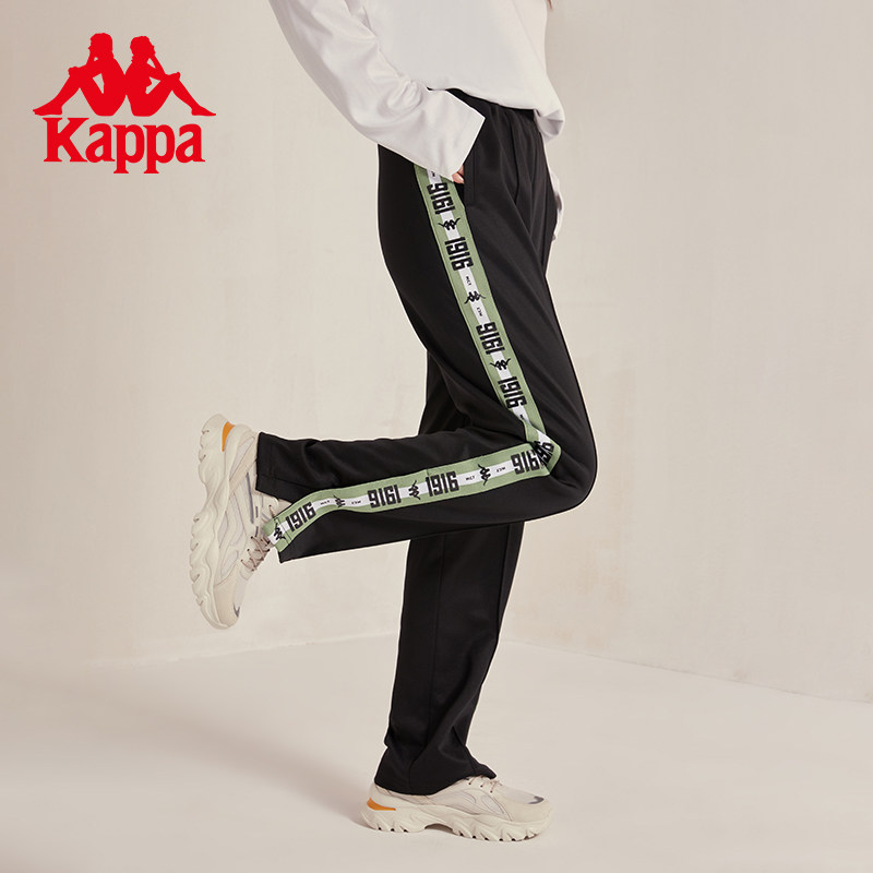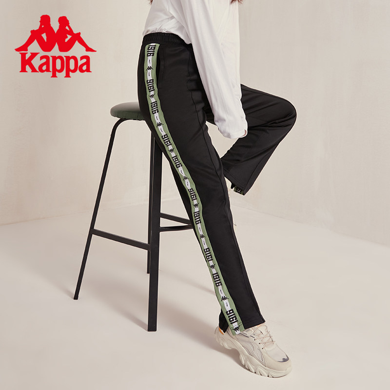 Kappa卡帕学院风串标运动裤女秋黑色长裤休闲小脚卫裤