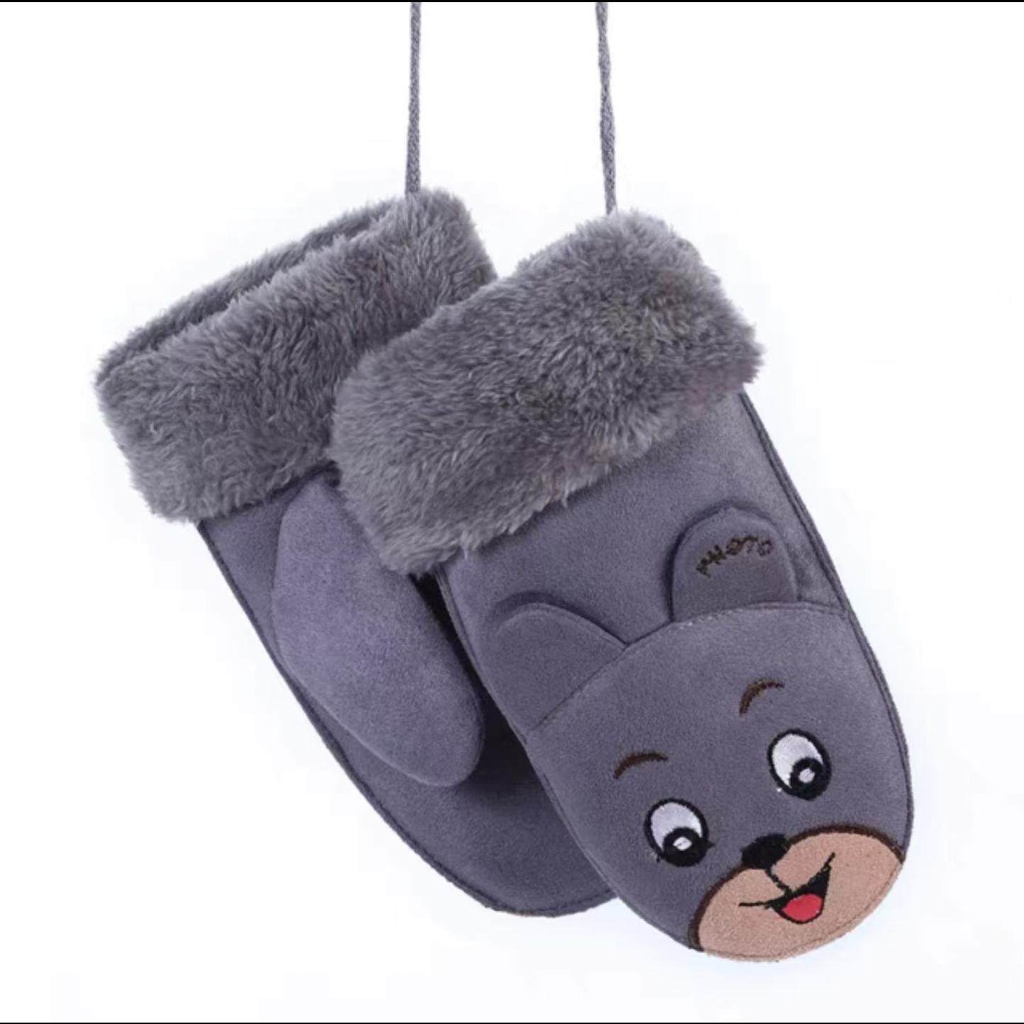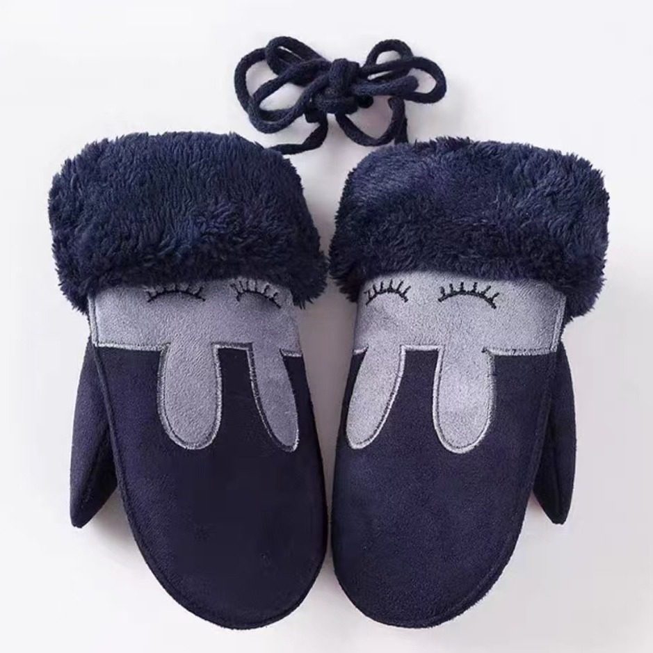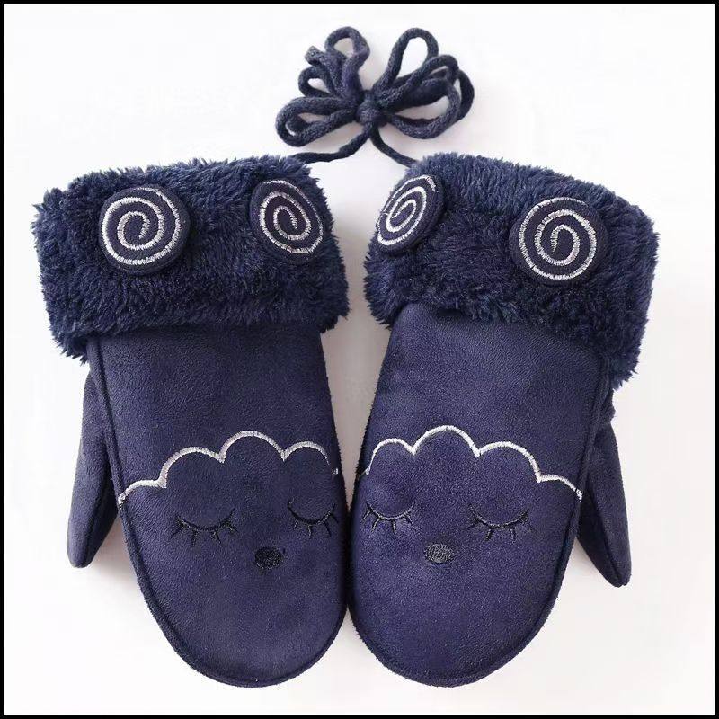 可爱卡通儿童手套户外运动加厚加绒保暖玩雪防寒秋冬连指挂脖手套