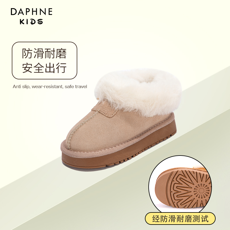达芙妮女童雪地靴儿童短靴子2024新款冬季女孩加绒厚防水绒大棉鞋