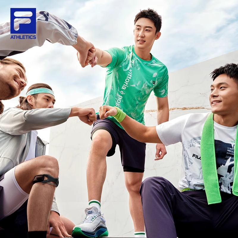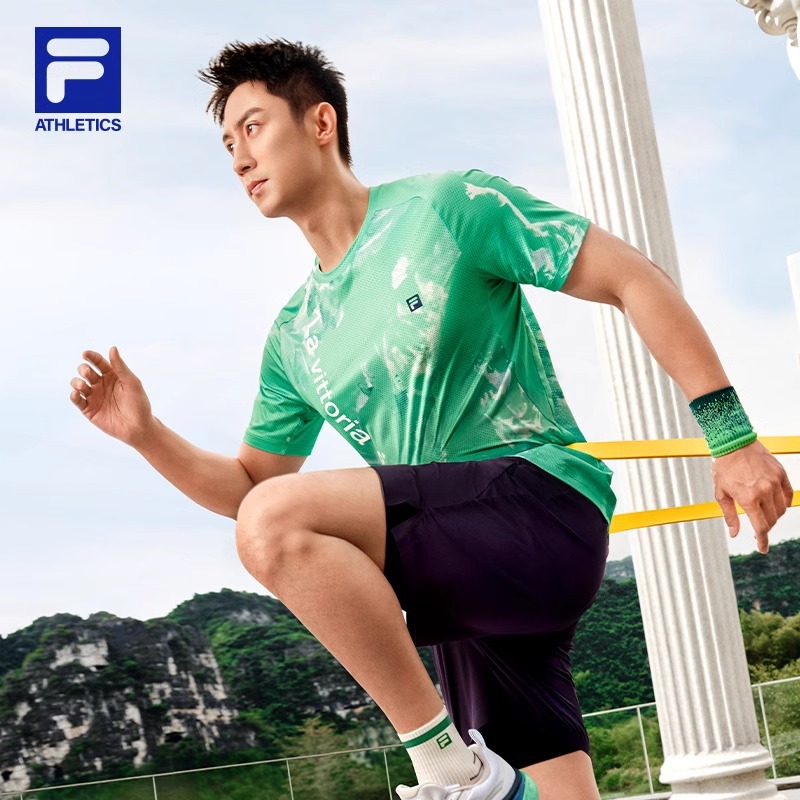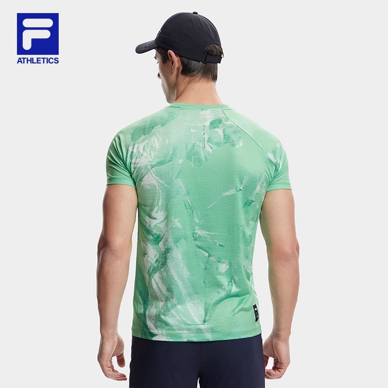 FILA 斐乐官方男子针织短袖衫2024夏季新款健身运动满印修身T恤衫