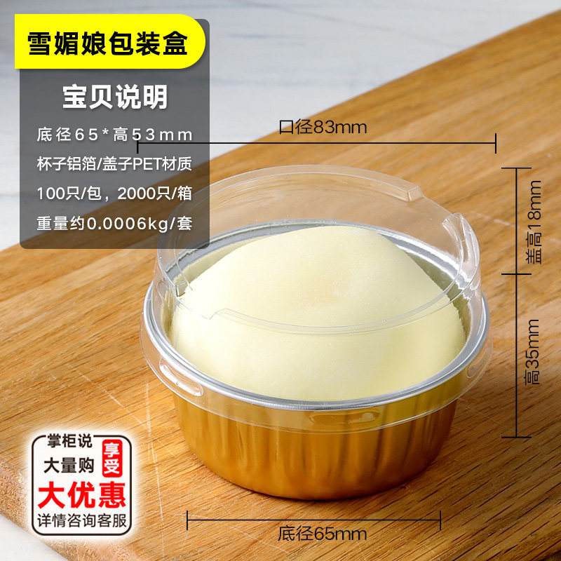 圆形雪媚娘大福包装盒子慕斯布丁单个蛋糕杯一次性锡纸铝箔打包盒