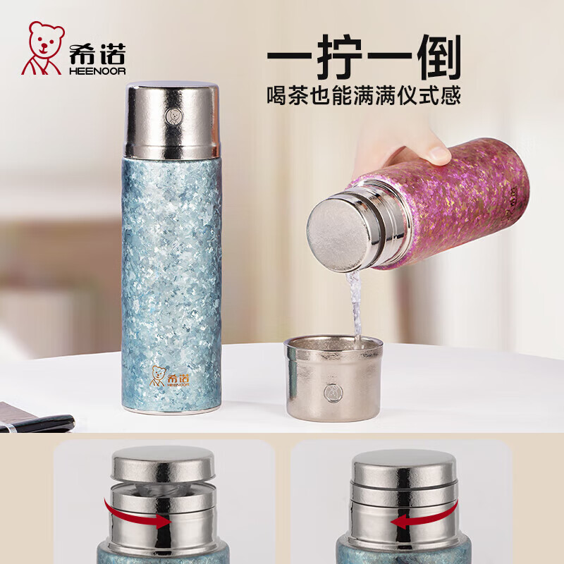 希诺纯钛保温杯新款高端泡茶钛杯男女高颜值办公室水杯抗菌礼盒装