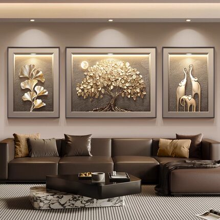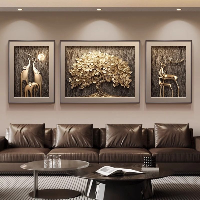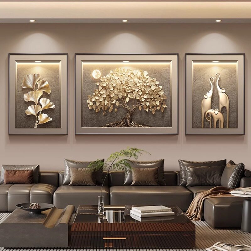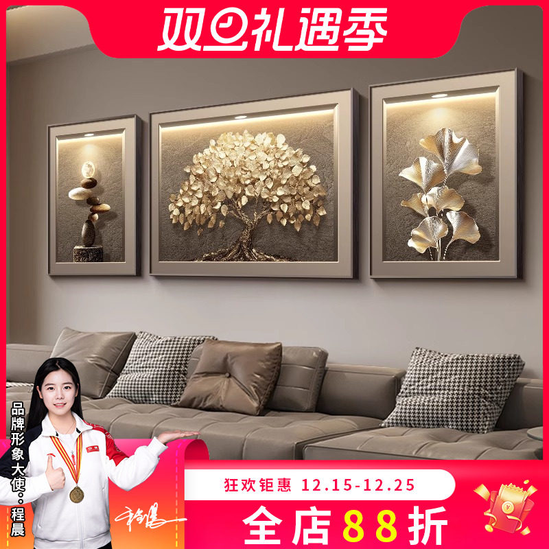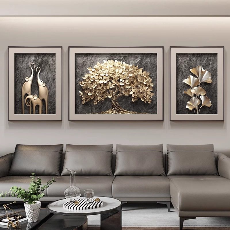 发财树现代轻奢客厅装饰画高级感三联壁画2025新款沙发背景墙挂画