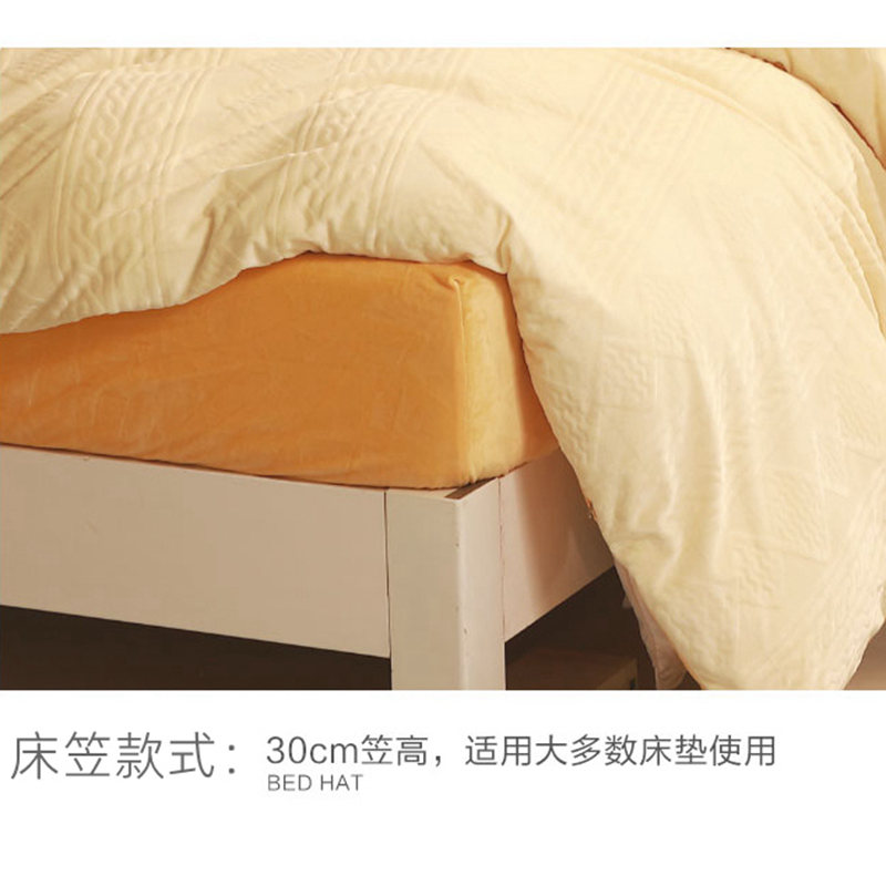 富安娜水晶绒床单床笠款四件套珊瑚法兰绒牛奶绒被套加厚冬季床品