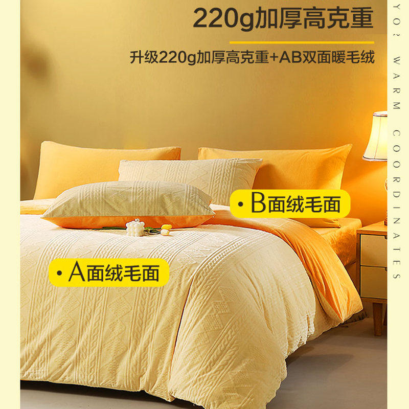 富安娜水晶绒牛奶绒四件套加厚暖