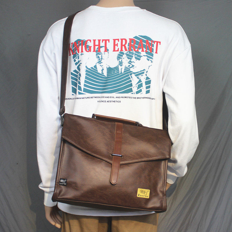 潮牌男士手提包大容量包包青年商务简约单肩斜挎包休闲公文包软皮