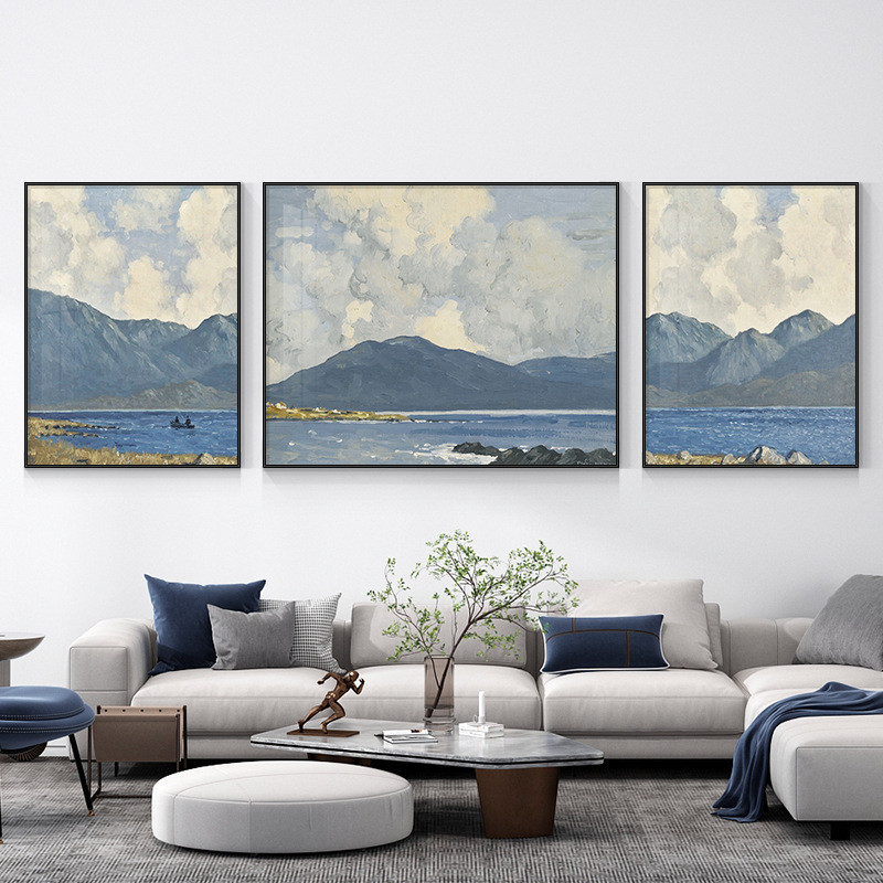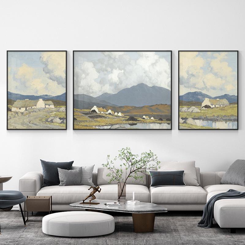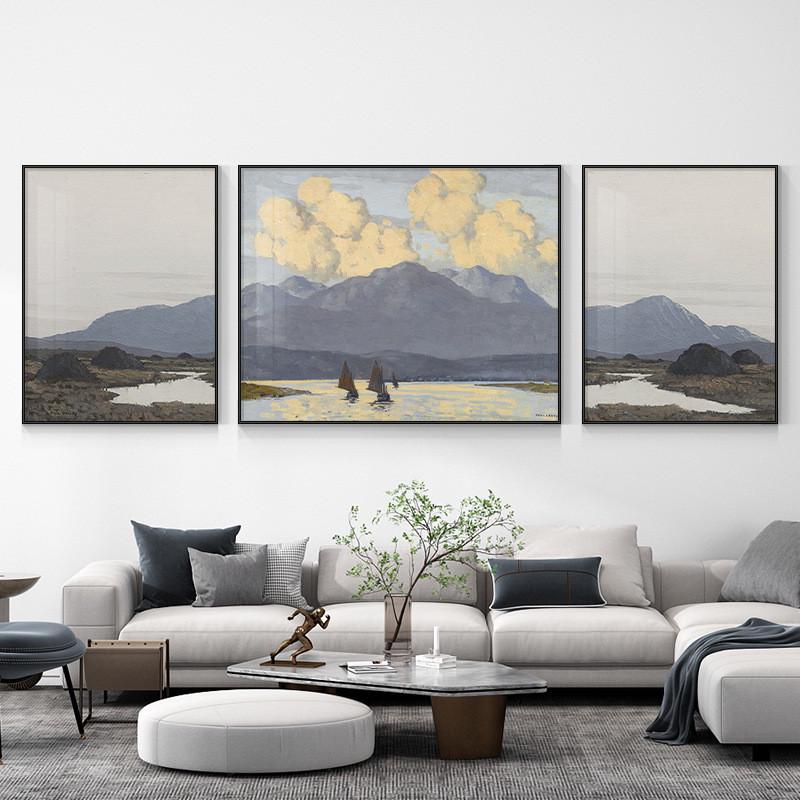源头北欧装饰画山水画客厅挂画简约油画沙发背景墙三联画