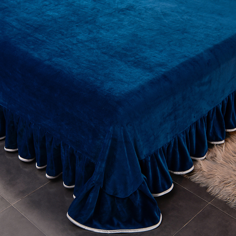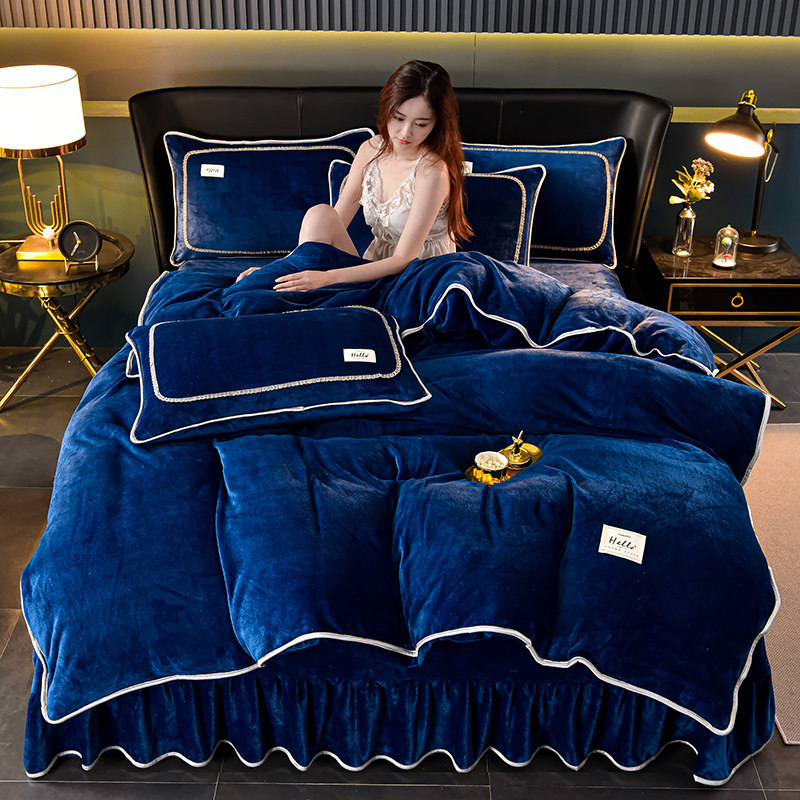 甄品冬季加厚双面法兰绒四件套纯色珊瑚绒床裙床上防静电