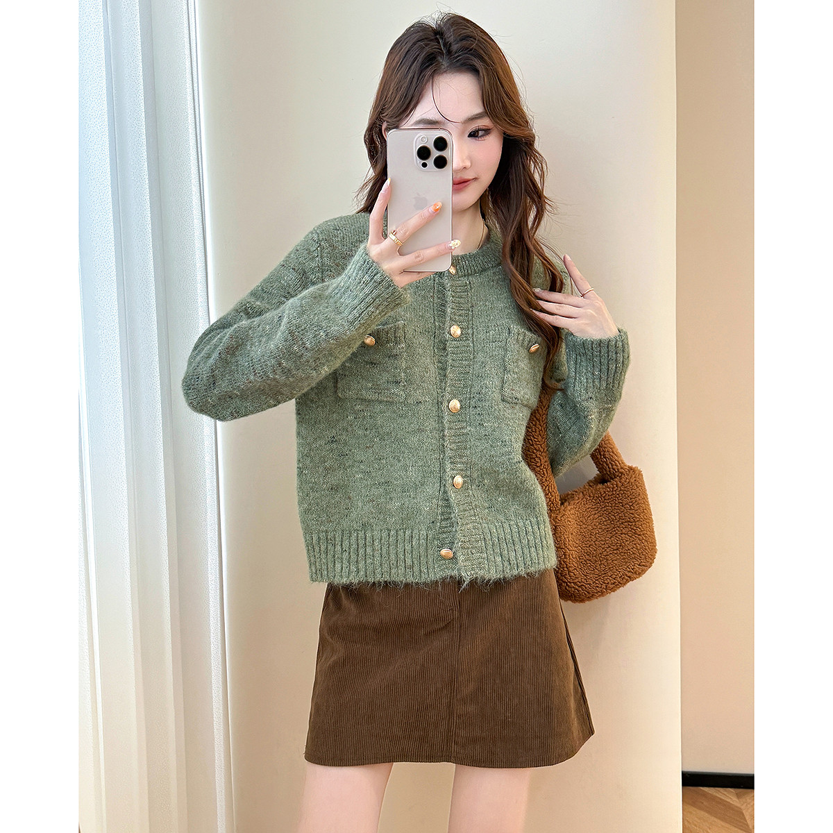 唐狮秋冬女毛衣小香风新型花纱圆领针织开衫女春秋外套高级感tu