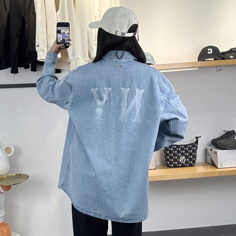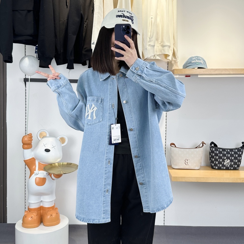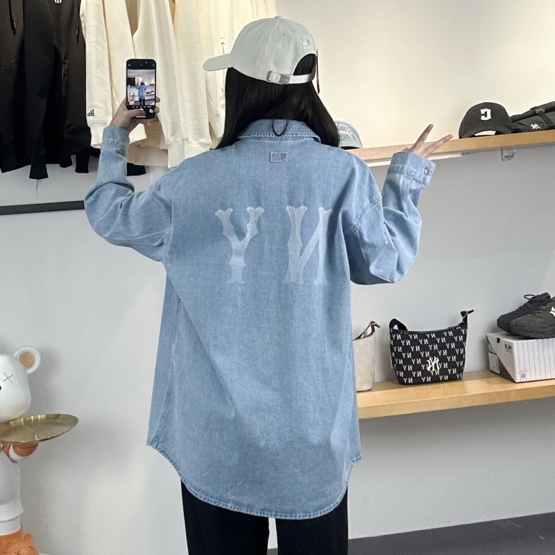 25新款MLB情侣牛仔外套男女NY水洗做旧宽松休闲长袖衬衫3ADRB0151