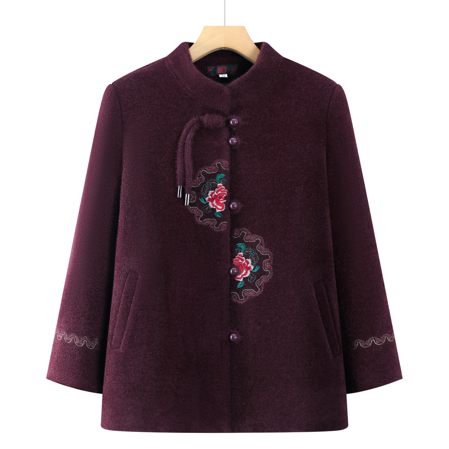 老年女装妈妈冬装毛呢外套2025新款高档洋气母亲衣服奶奶喜庆唐装