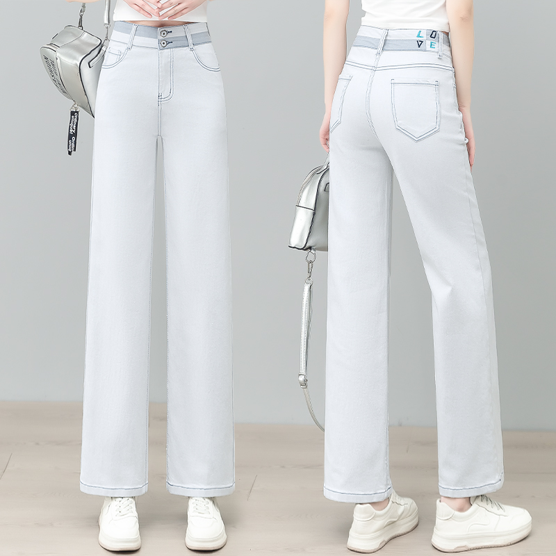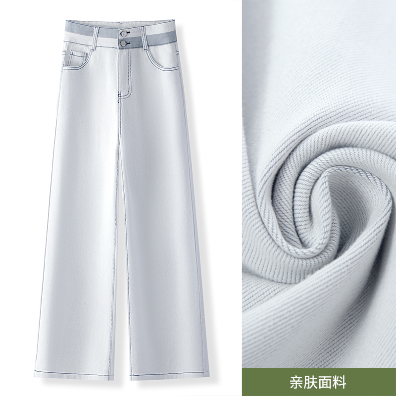 莫兰迪灰牛仔阔腿裤女宽腿小个子显瘦2025春季高腰遮肚子直筒裤子