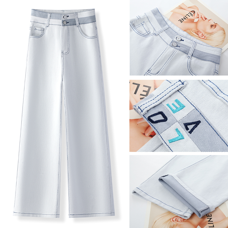 莫兰迪灰牛仔阔腿裤女宽腿小个子