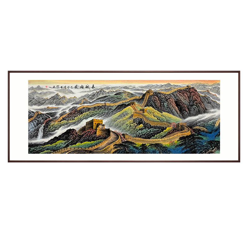 手绘国画万里长城挂画客厅办公室新中式背景墙挂画靠山招财装饰画