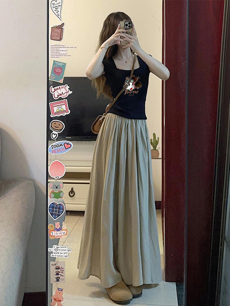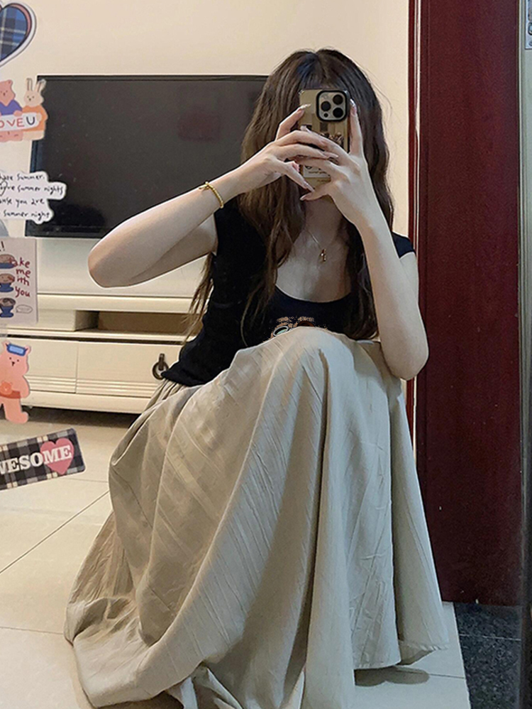 无袖纯棉吊带短袖t恤女生黑色方领正肩修身背心上衣2024夏季新款