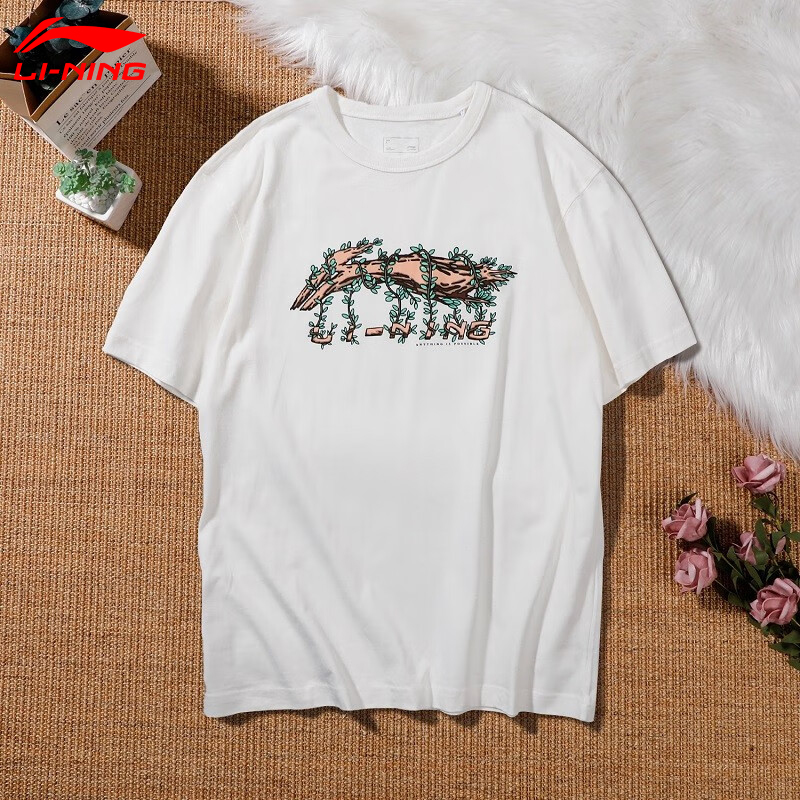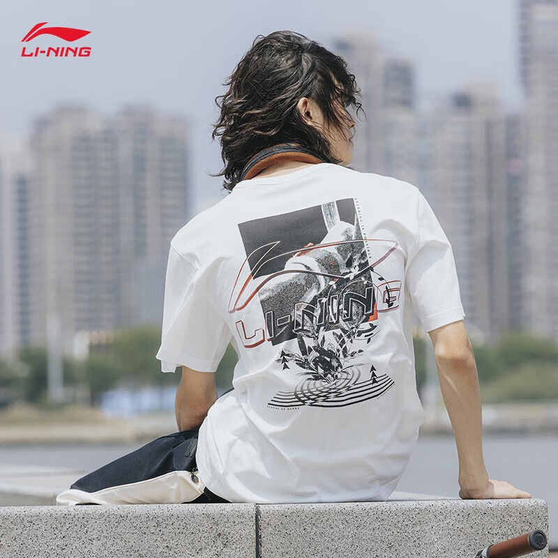 李宁短袖t恤男夏季新款纯棉宽松圆领衣服运动半袖男款潮流上衣男