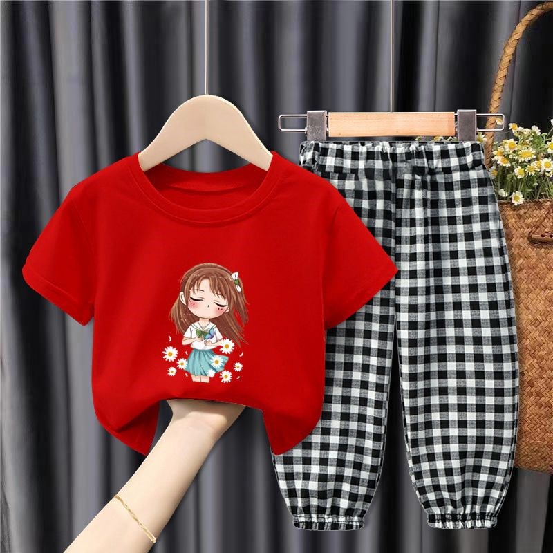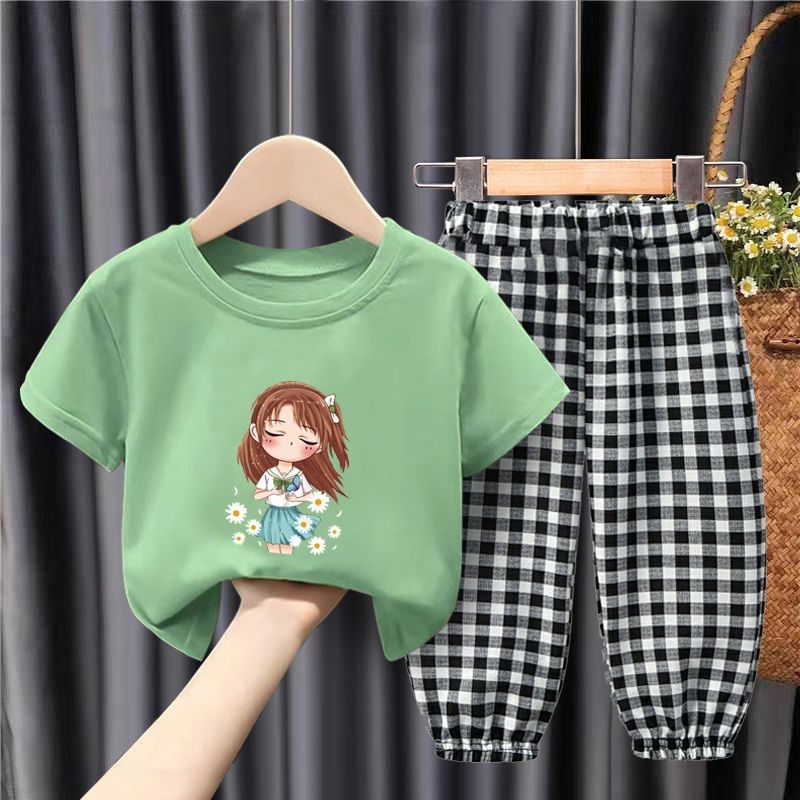 中大童夏装短袖T恤套装2024新款男女宝宝洋气夏季时尚两件套