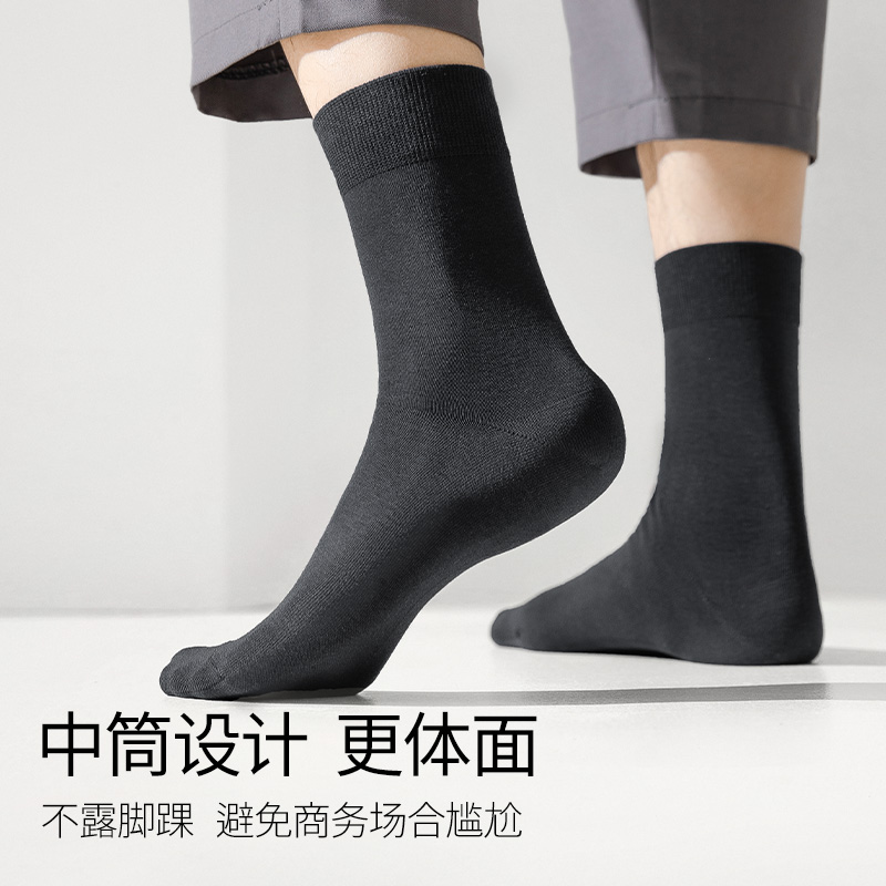 袜子男商务袜中筒春秋纯棉抗菌防臭吸汗礼盒皮鞋男士秋冬黑色长袜