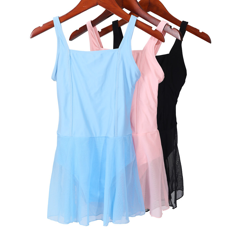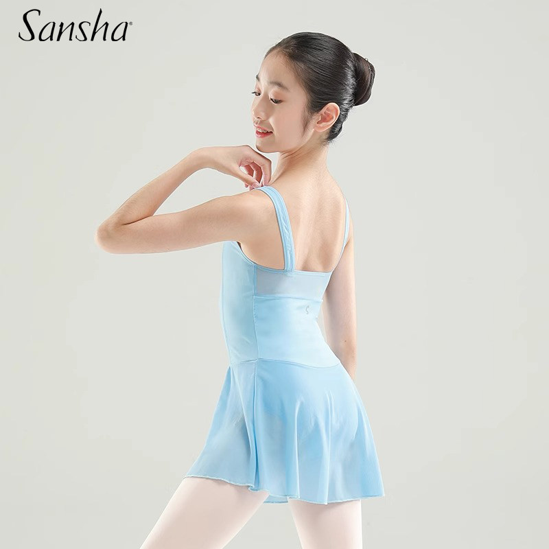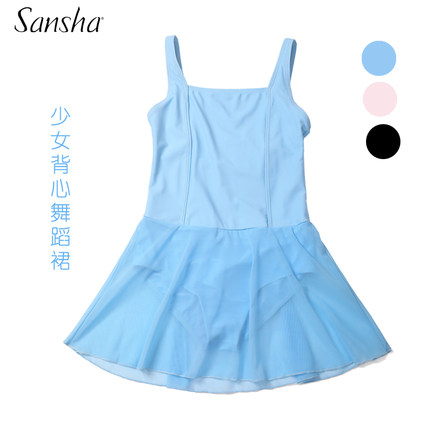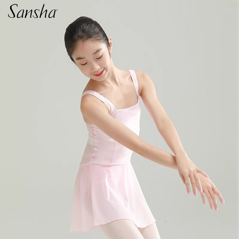 Sansah三沙儿童芭蕾舞服少女背心连体裙舞蹈练功服粉色形体舞蹈裙