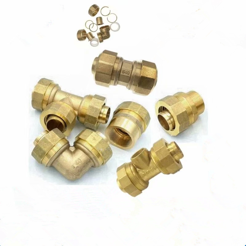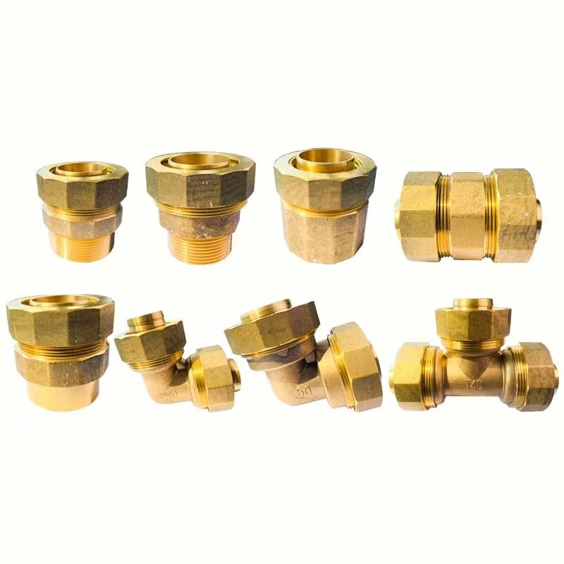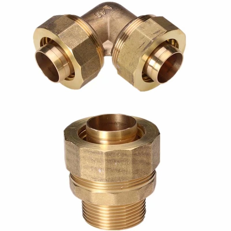 大口径铝塑管铜接头DN40 50 63铝塑管配件内外丝直接弯头三通接头
