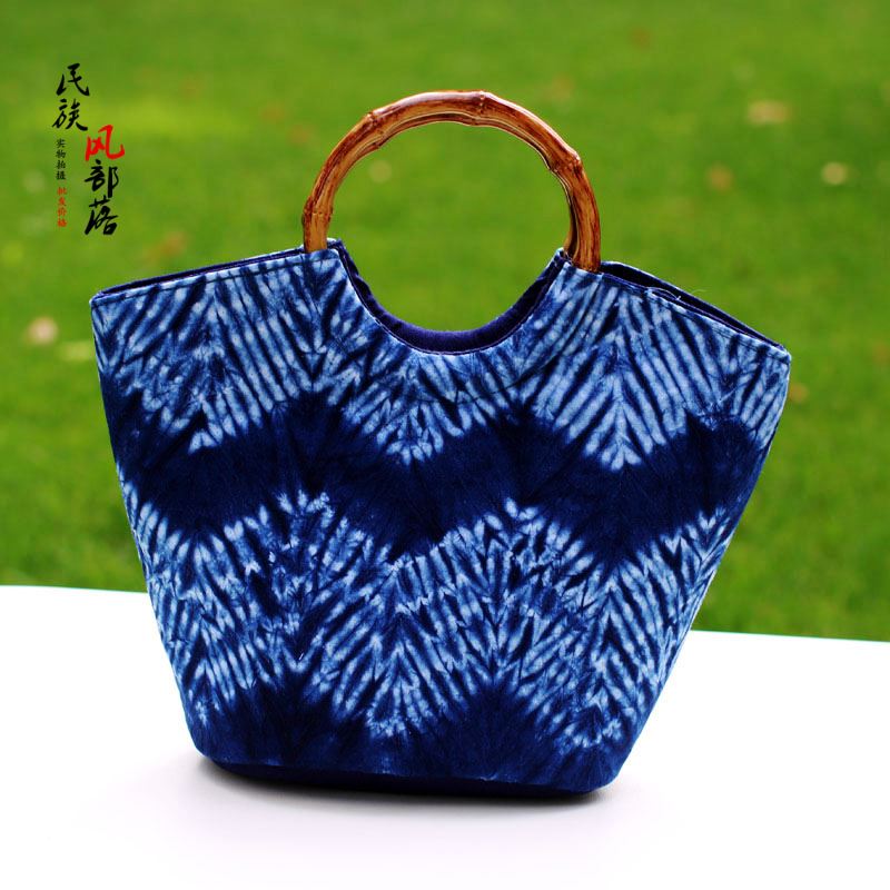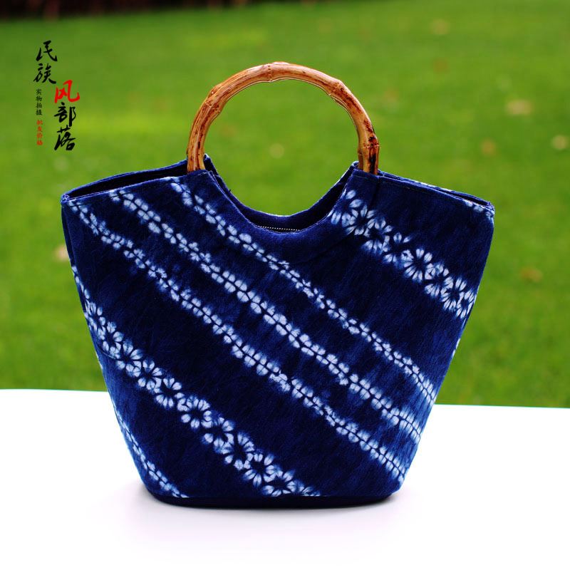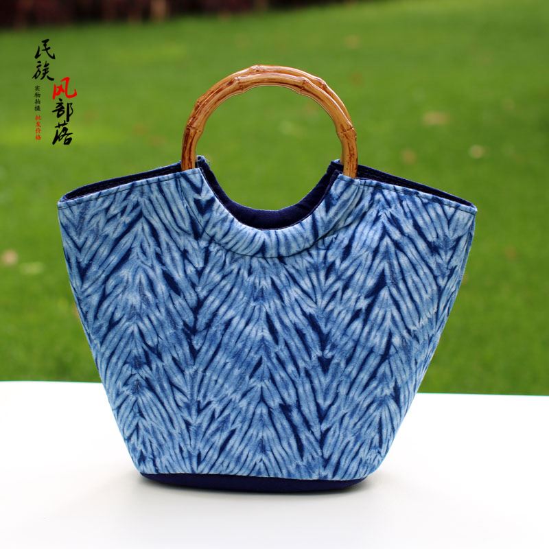 国风民族复古扎染旗袍竹节汉服中式休闲女包手提包拎包新款包包