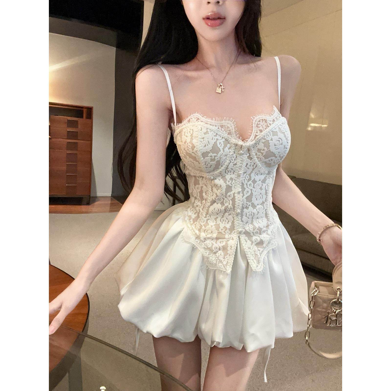 刺绣蕾丝吊带背心女夏季纯欲辣妹一字肩鱼骨抹胸小上衣巨好看绝美
