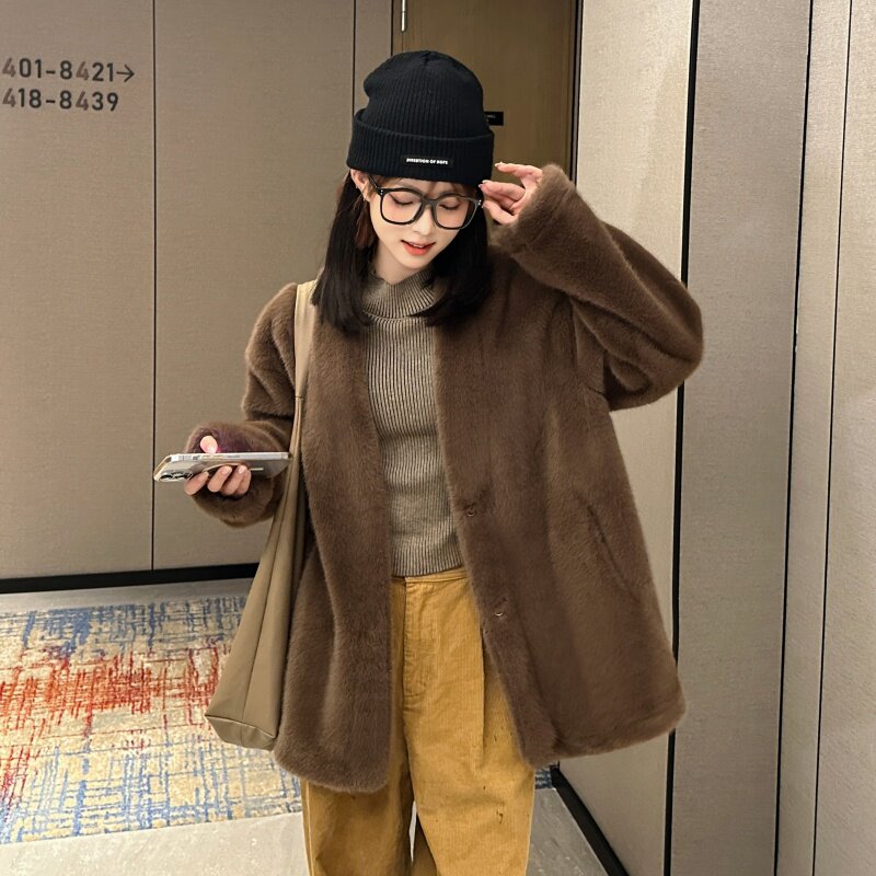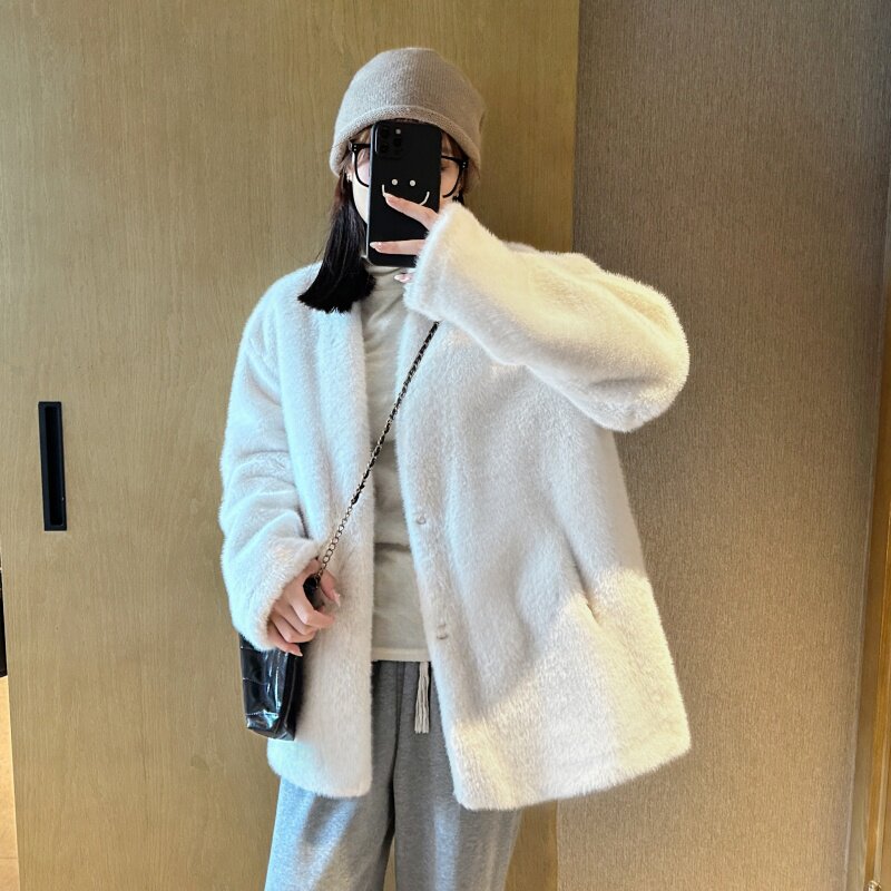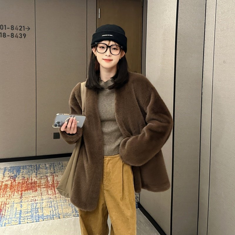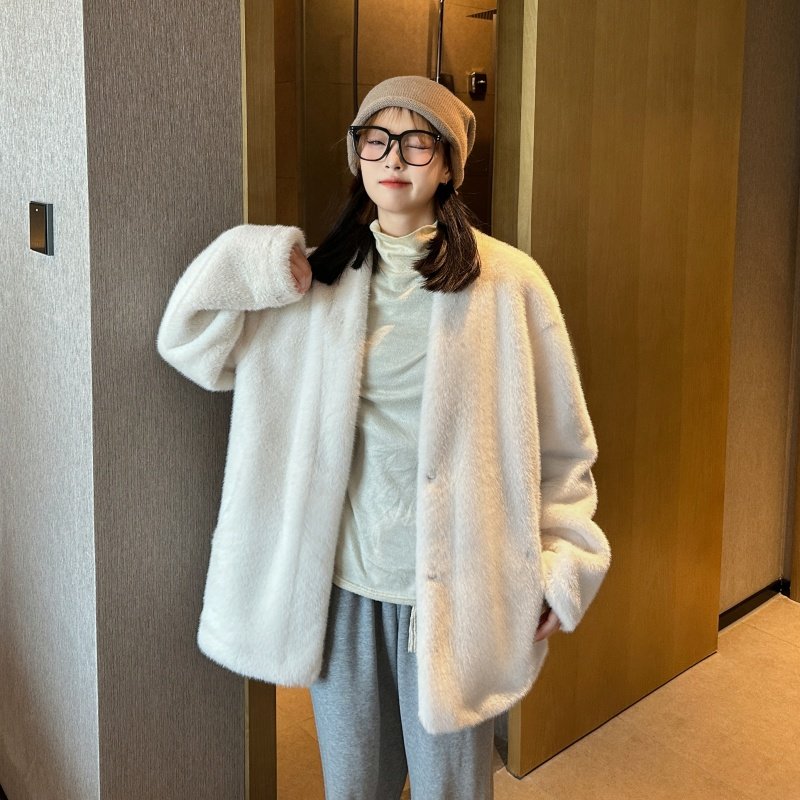 2025冬新款环保皮草外套高级感水貂皮毛一体外套女中长款毛毛上衣