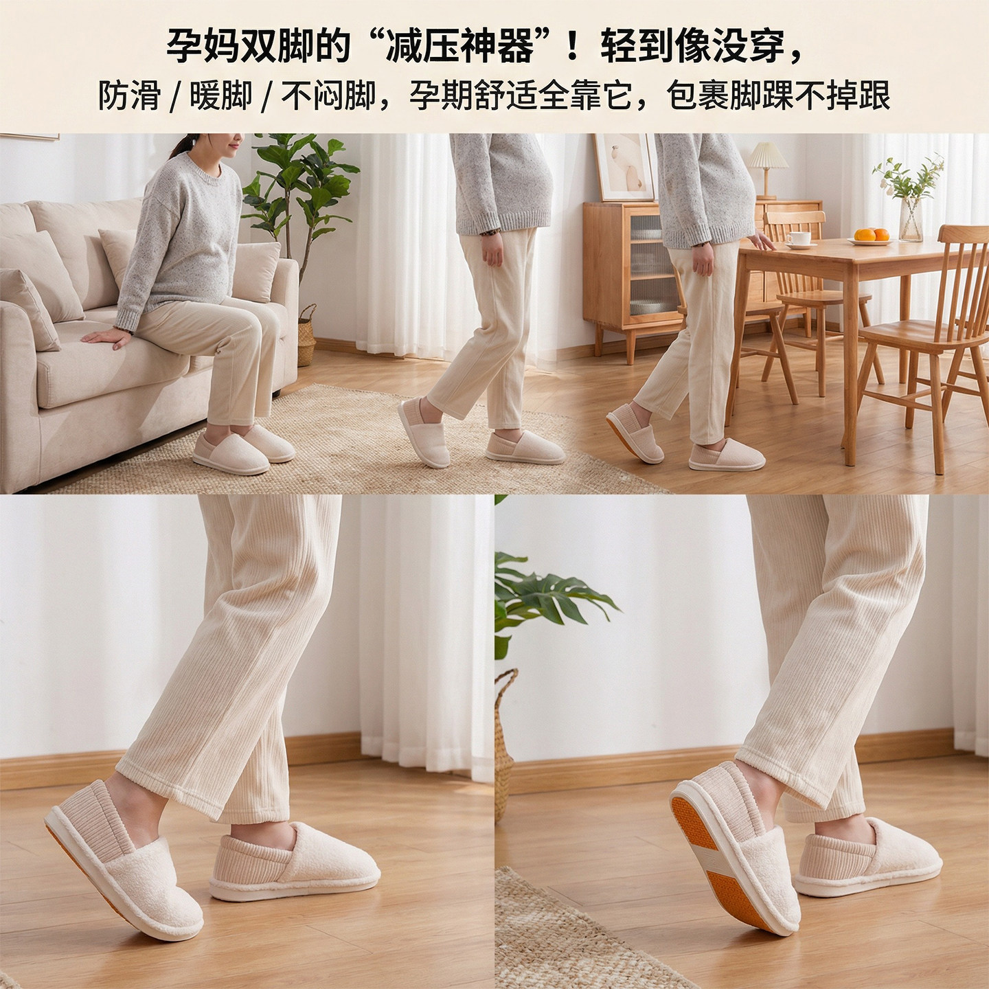 孕妇月子棉拖鞋女士冬季室内防滑软底居家234月份产妇包跟棉鞋春