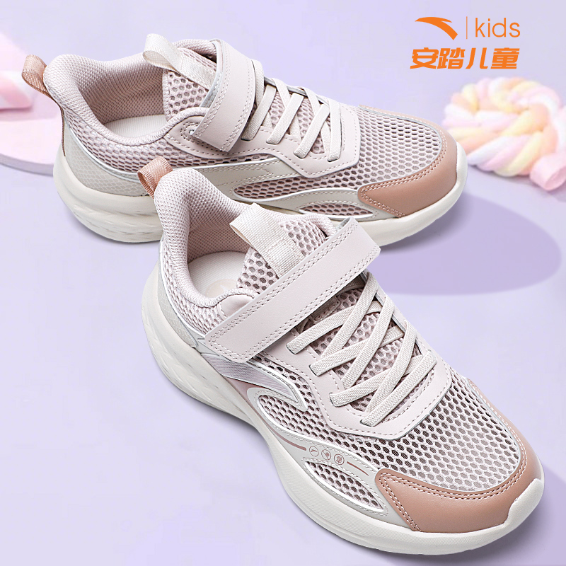 安踏儿童运动鞋女童2025新款夏季网面透气跑步鞋薄款大网眼童鞋女
