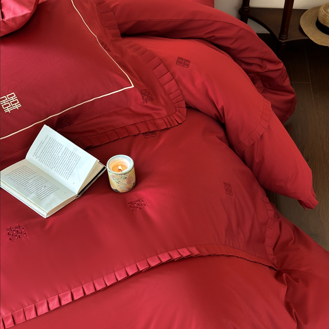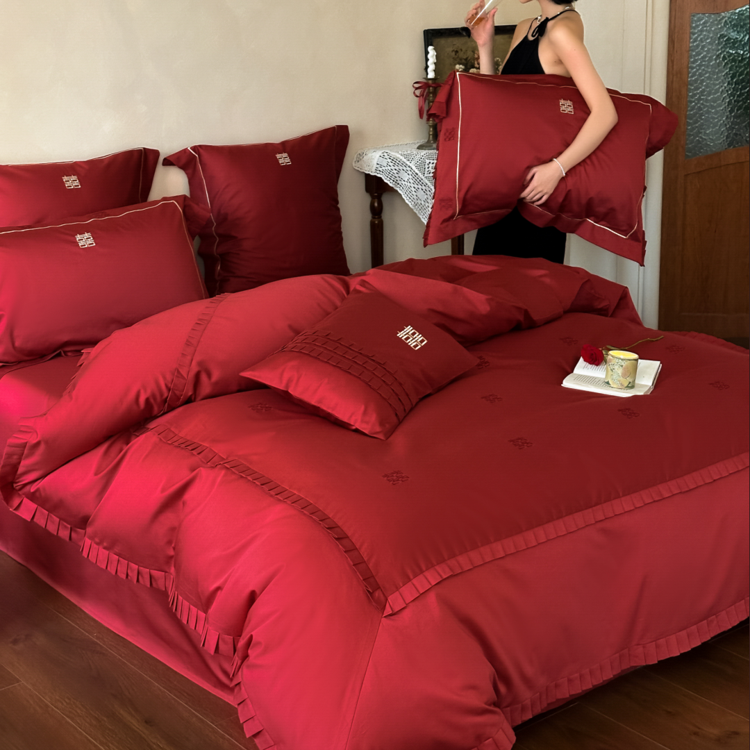 双喜刺绣100S全棉婚庆四件套