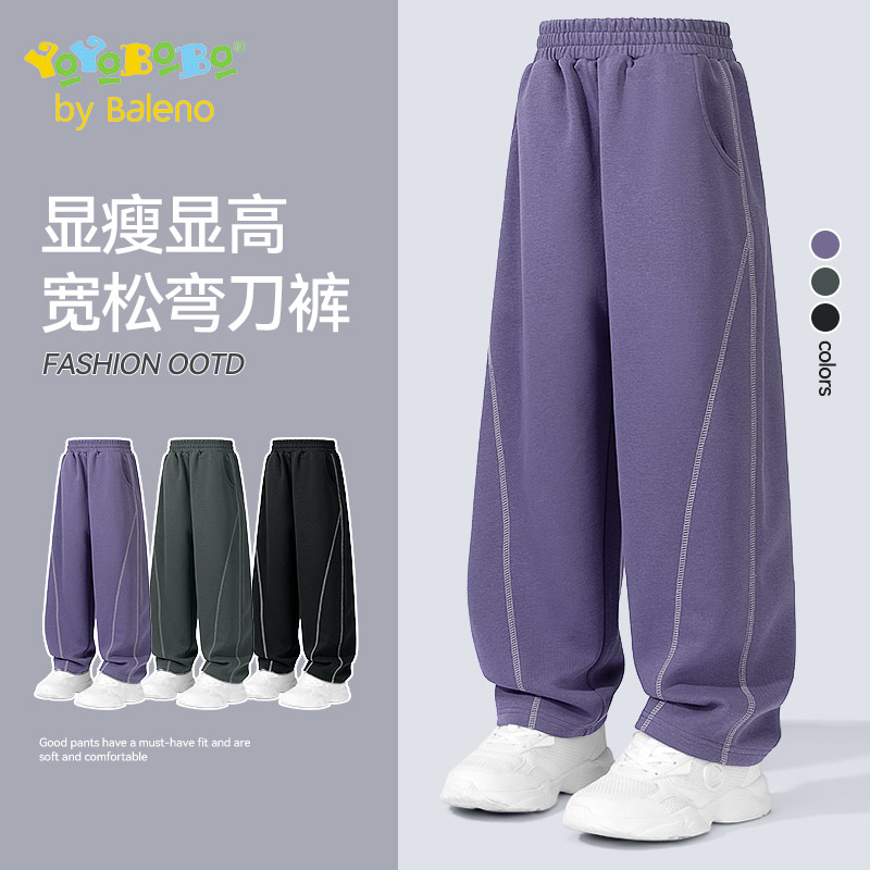 班尼路女童裤子春秋款加绒长裤儿童秋季弯刀裤女孩套装大童阔腿裤