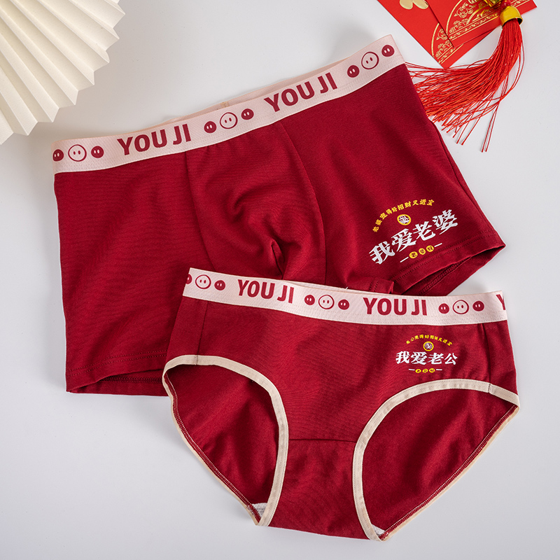 现货速发情侣内裤红色结婚本命年一男一士性感舒适中腰内衣套装