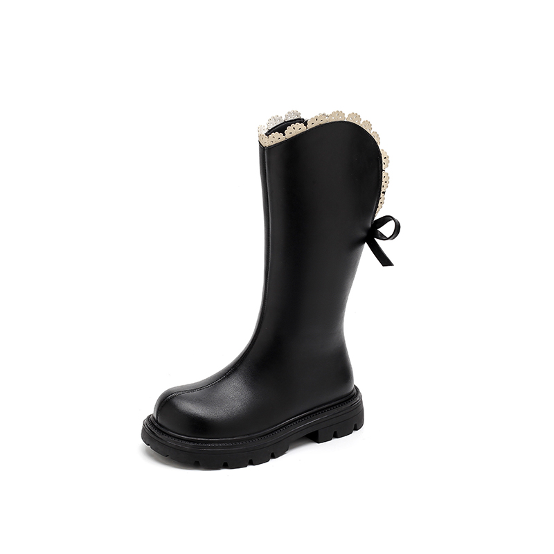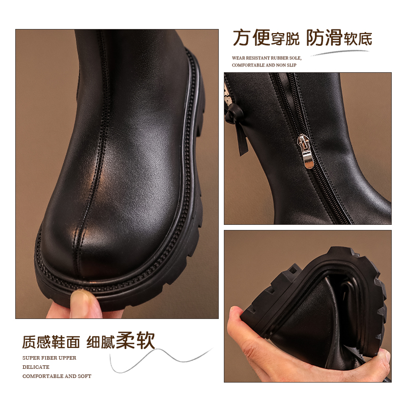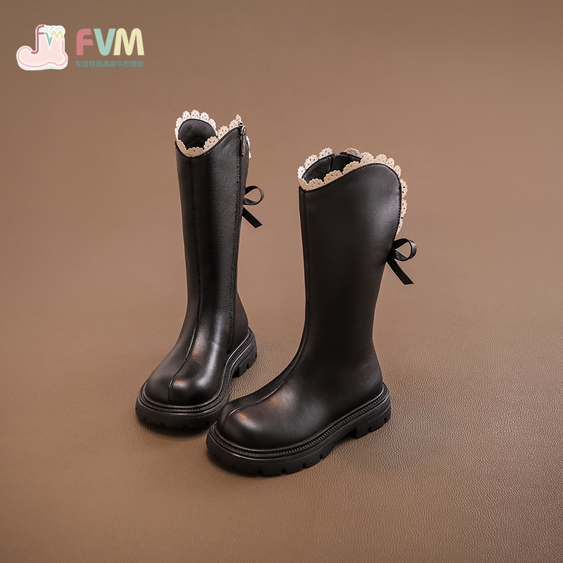 FVM女童鞋儿童长靴子2025秋冬季新款加绒小公主高筒长筒皮靴女孩