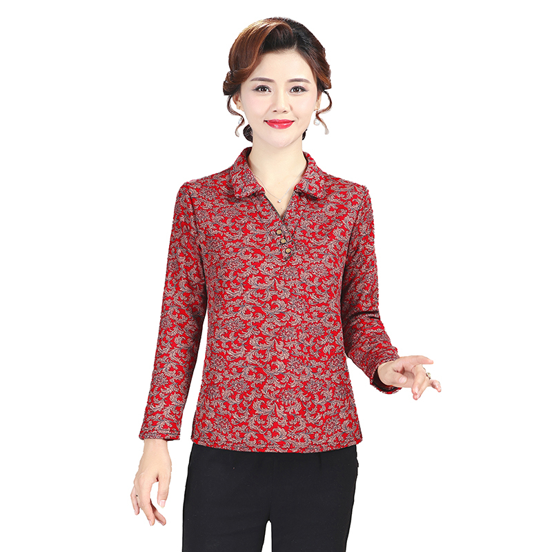 中老年人女春装长袖T恤薄款时尚上衣40-50岁妈妈装修身休闲打底衫