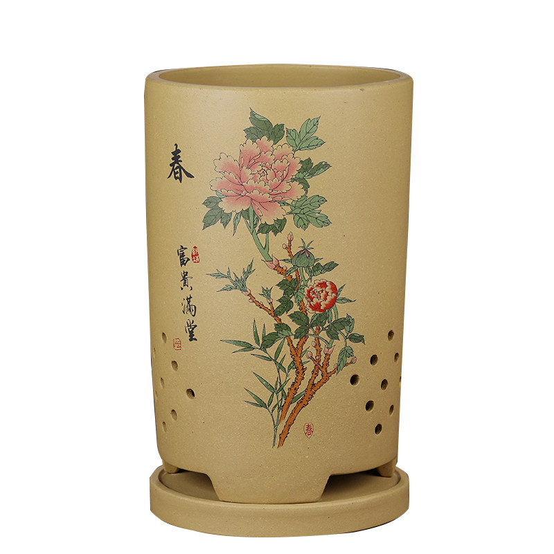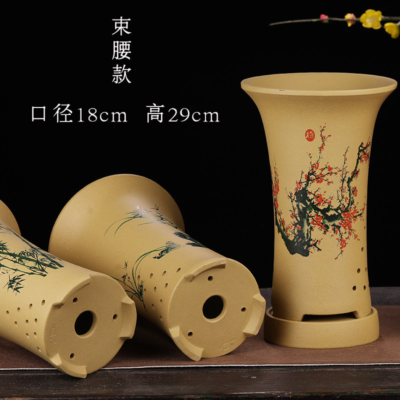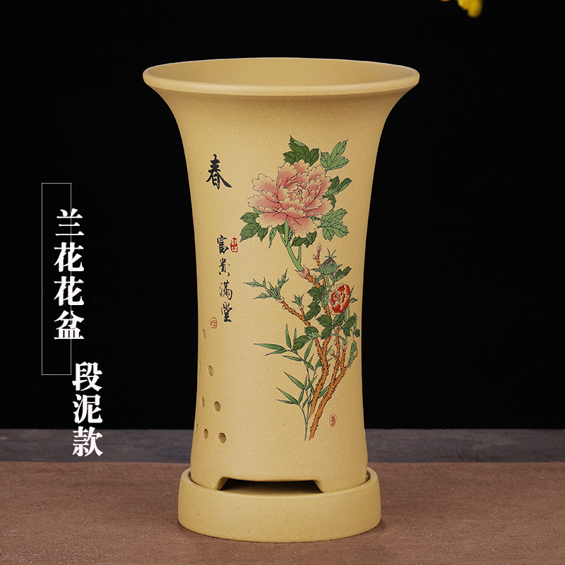 兰花花盆陶瓷大号简约高束腰兰花专用盆家用段泥紫砂花盆托盘特价