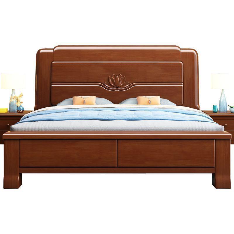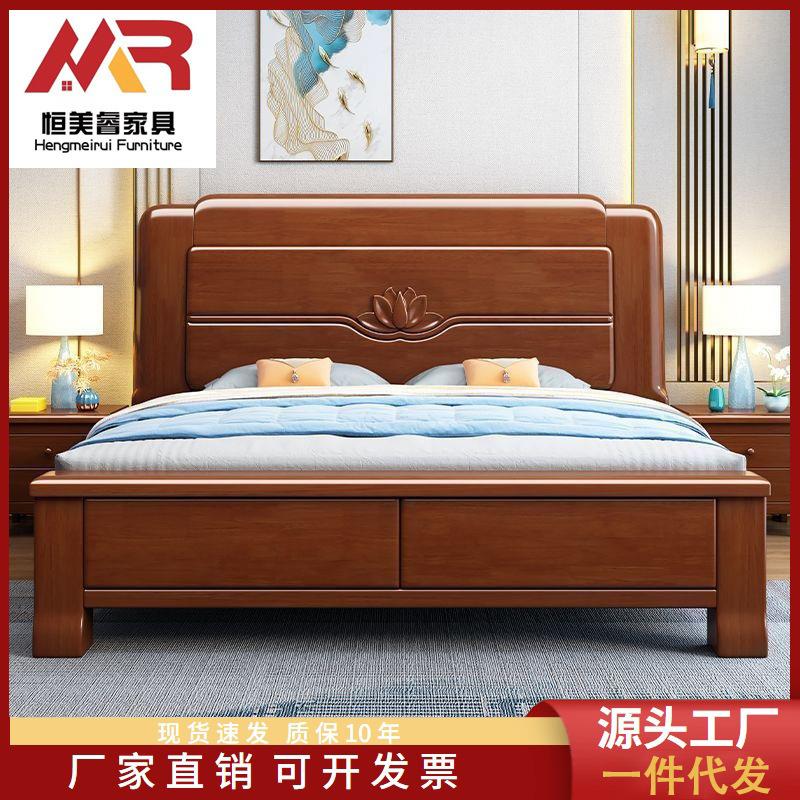 现代简约实木床1.8米双人收纳储物床主卧婚床简约现代1.5米单人床