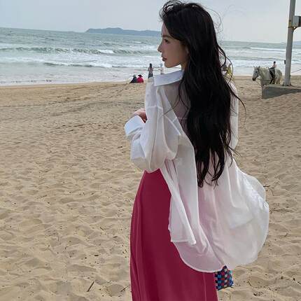 alex stevens白色天丝衬衫外套女春夏季薄款防晒长袖上衣衬衣开衫