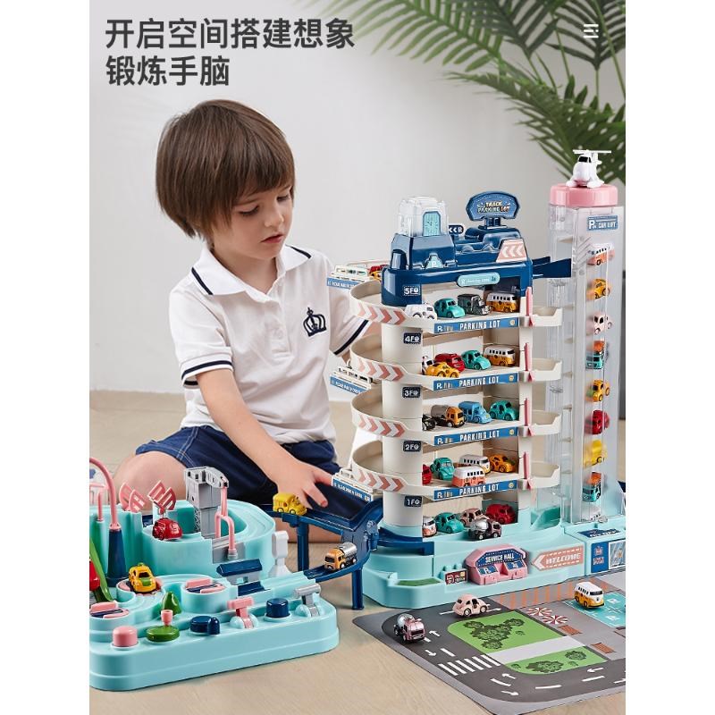 儿童停车场玩具城市汽车大楼多层电动轨道停车大厦男孩益智玩具。