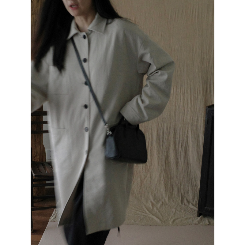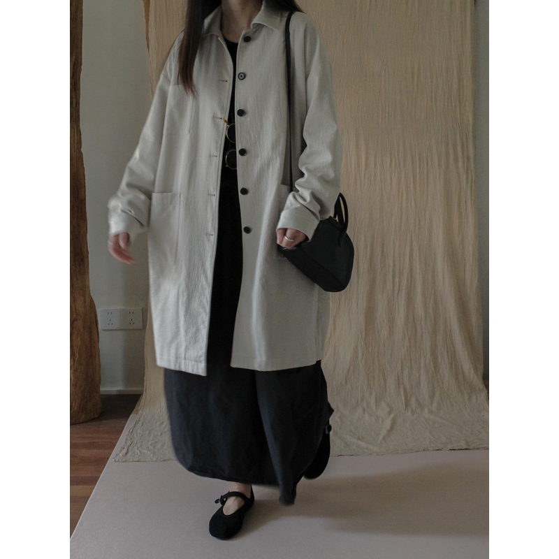 MMCC 进口料纯棉立体裁剪宽松大廓型复古休闲翻领长风衣外套女