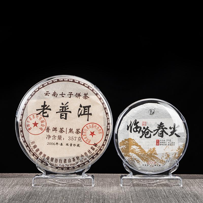 透明防尘茶叶摆放展示架家用收纳盒普洱茶饼盒实木茶托茶饼架配件