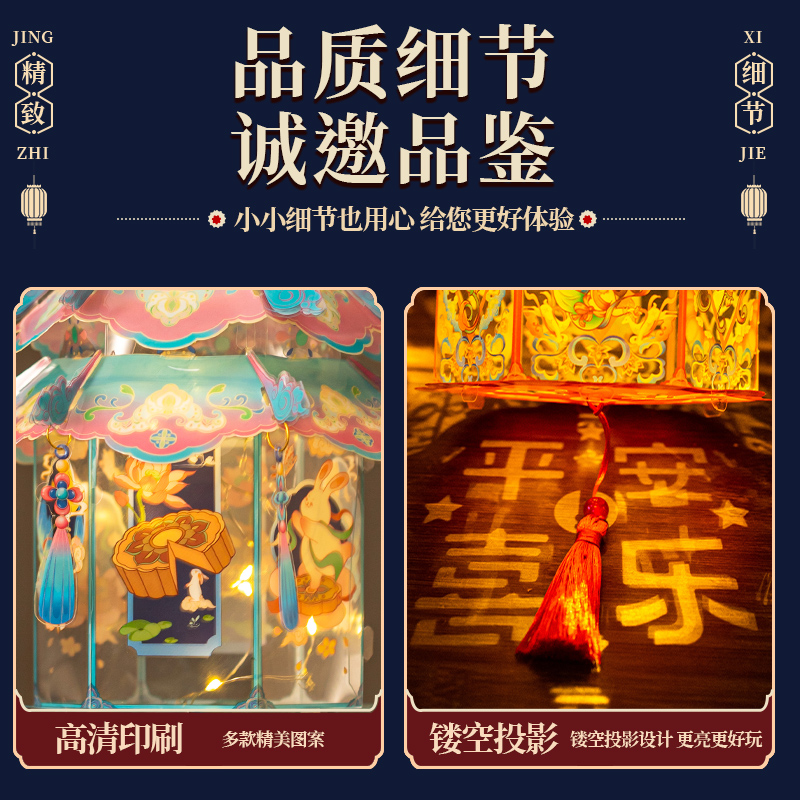 中秋灯笼儿童手提宫灯幼儿园手工diy材料包兔子发光古风花灯挂饰