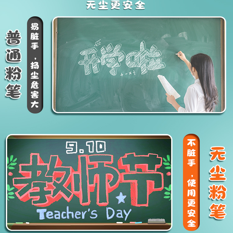 水溶性粉笔无尘儿童不脏手黑板笔白色水性家用教师彩色粉笔无粉尘灰尘白粉笔黑板报鲜艳幼儿园宝宝可擦