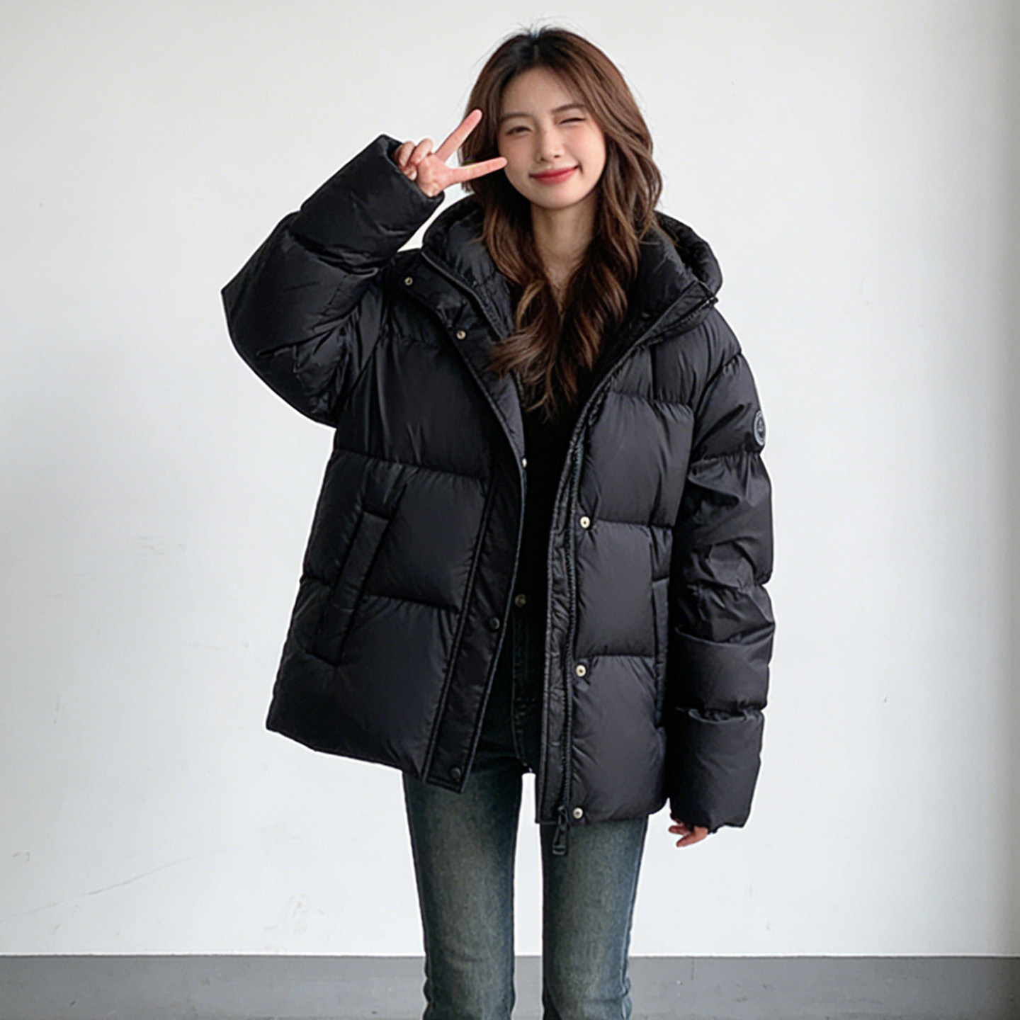 冬季大码胖mm黑色学院风连帽棉服女加厚宽松显瘦面包服棉衣外套