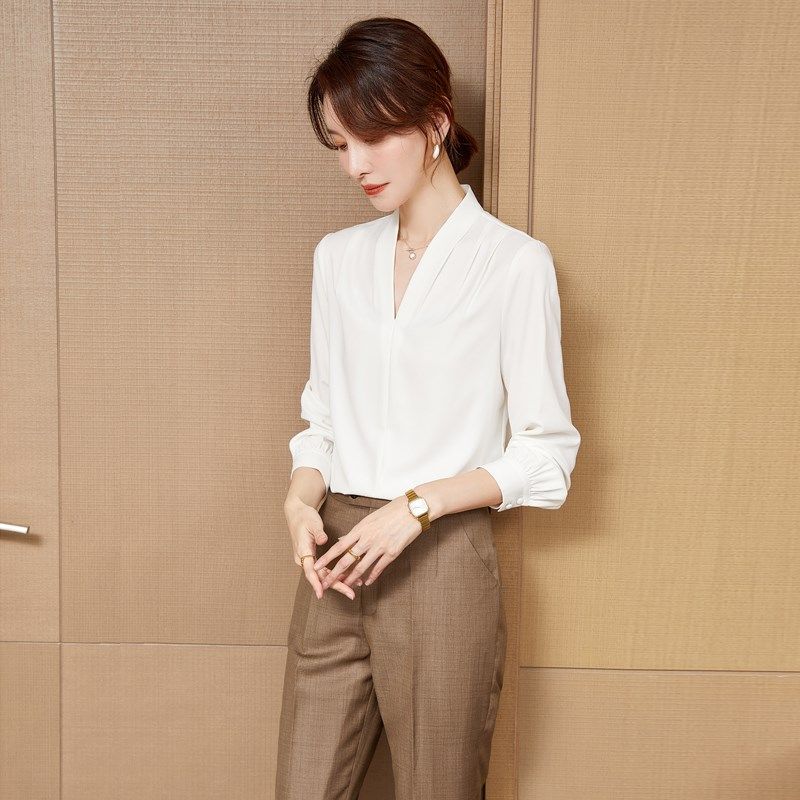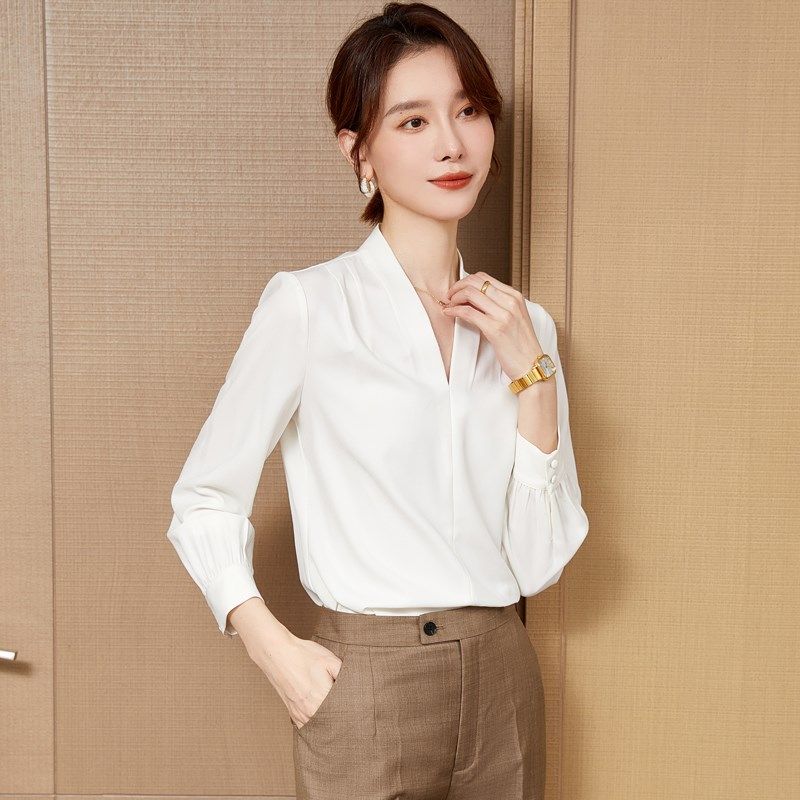 短袖衬衫女新款2025新款夏季设计感气质V领白色衬衣工作服职业装