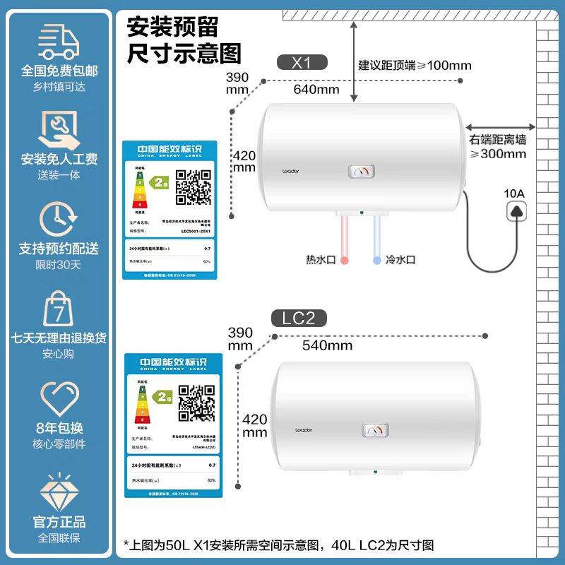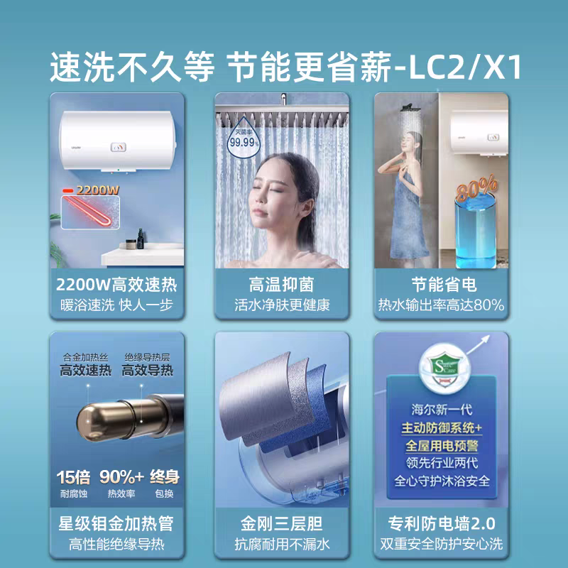 海尔出品统帅LES40H-LC1家用储水式电热水器节能防电安全洗澡X1