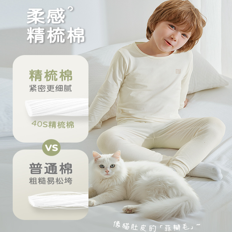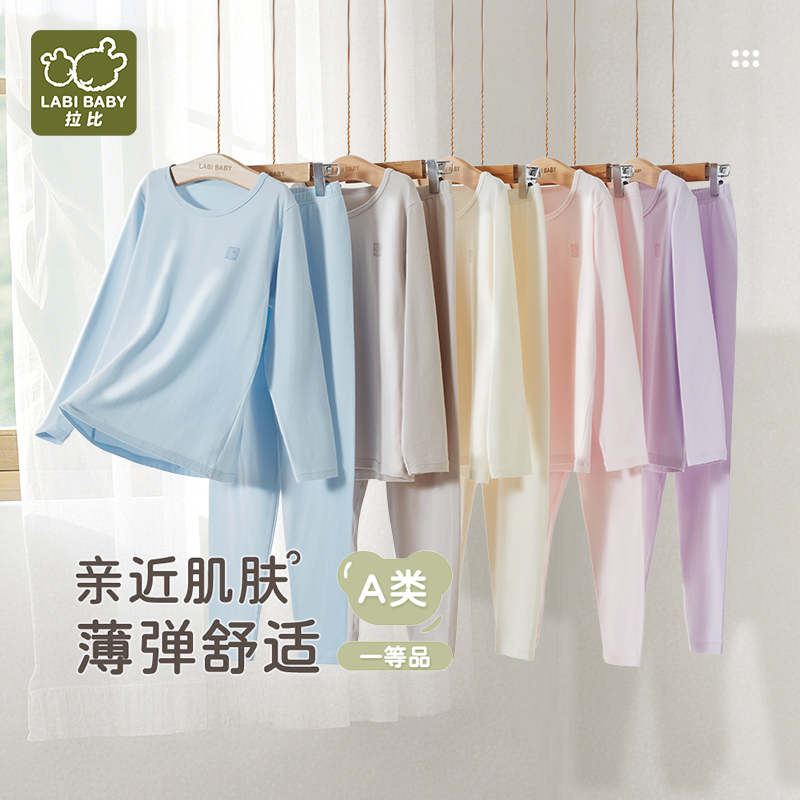拉比儿童弹力圆领服套装家居内衣长袖2025秋季新款男女童打底内衣