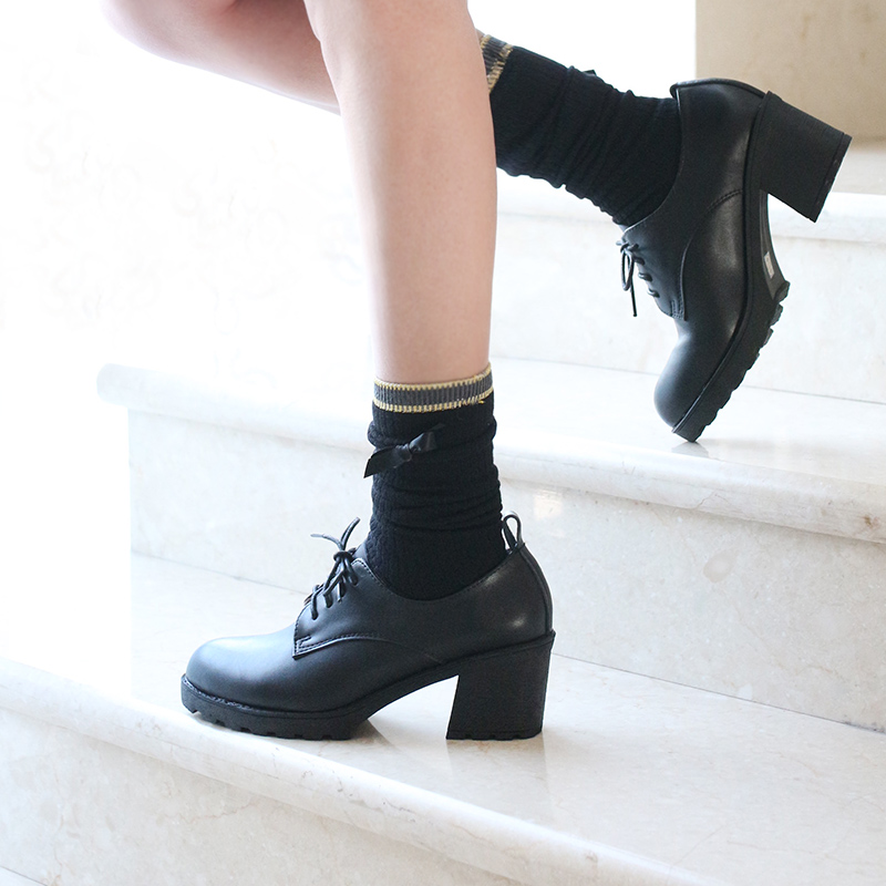 英伦风女鞋复古高跟鞋乐福鞋学院风英伦JK皮鞋制服鞋棕色小皮鞋女