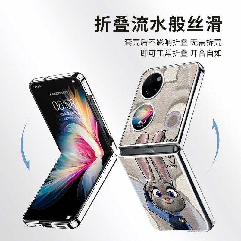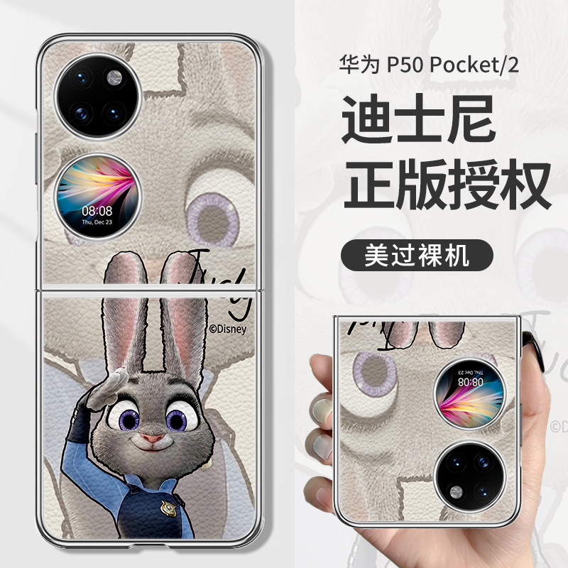 适用华为pocket2手机壳折叠屏迪士尼p50新款s荣耀magicv小米mix小羊皮nova保护套oppovivo三星Zflip6朱迪5外4