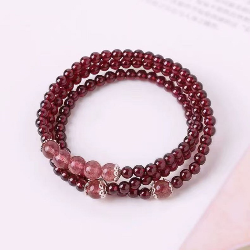 石榴石手链女小众饰品简约水晶草莓晶手串酒红珠子手饰女生饰仿品